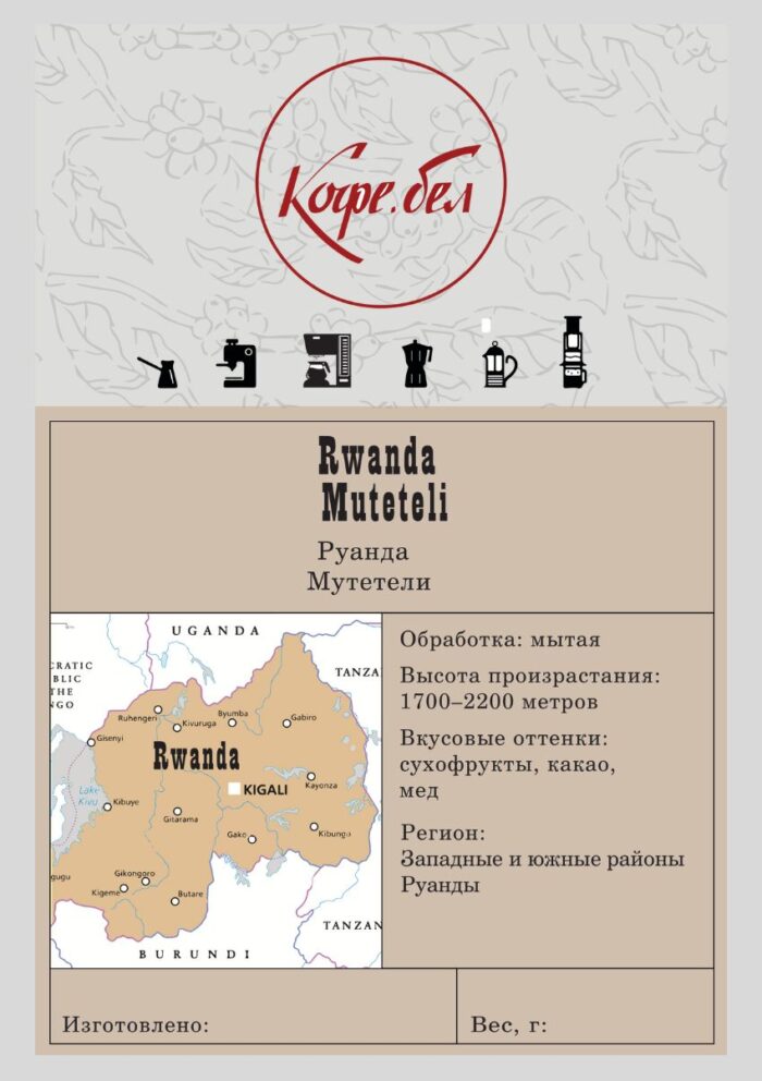 Кофе Руанда Мутетели — это очень интересный и яркий лот, который часто представляет собой смесь зерен из нескольких регионов Руанды. В нашем случае из западных и северных.